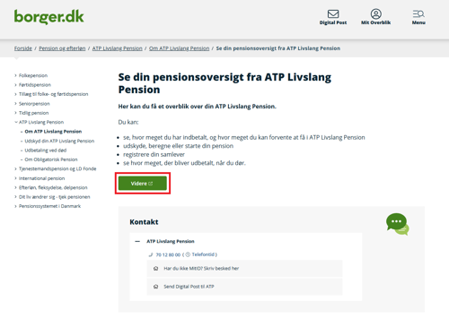 Tryk på knappen ”Videre” for at komme til ATP’s selvbetjening.